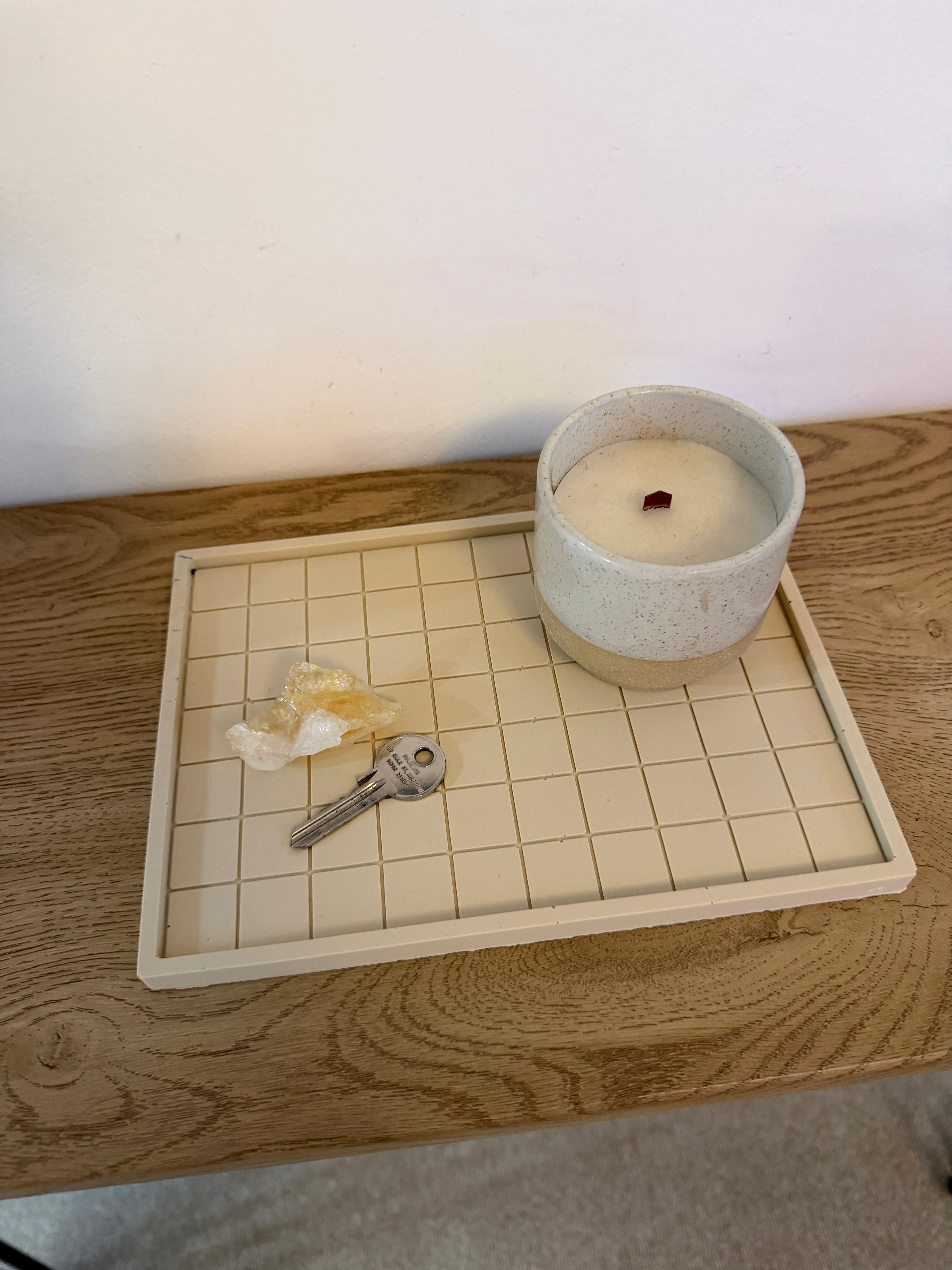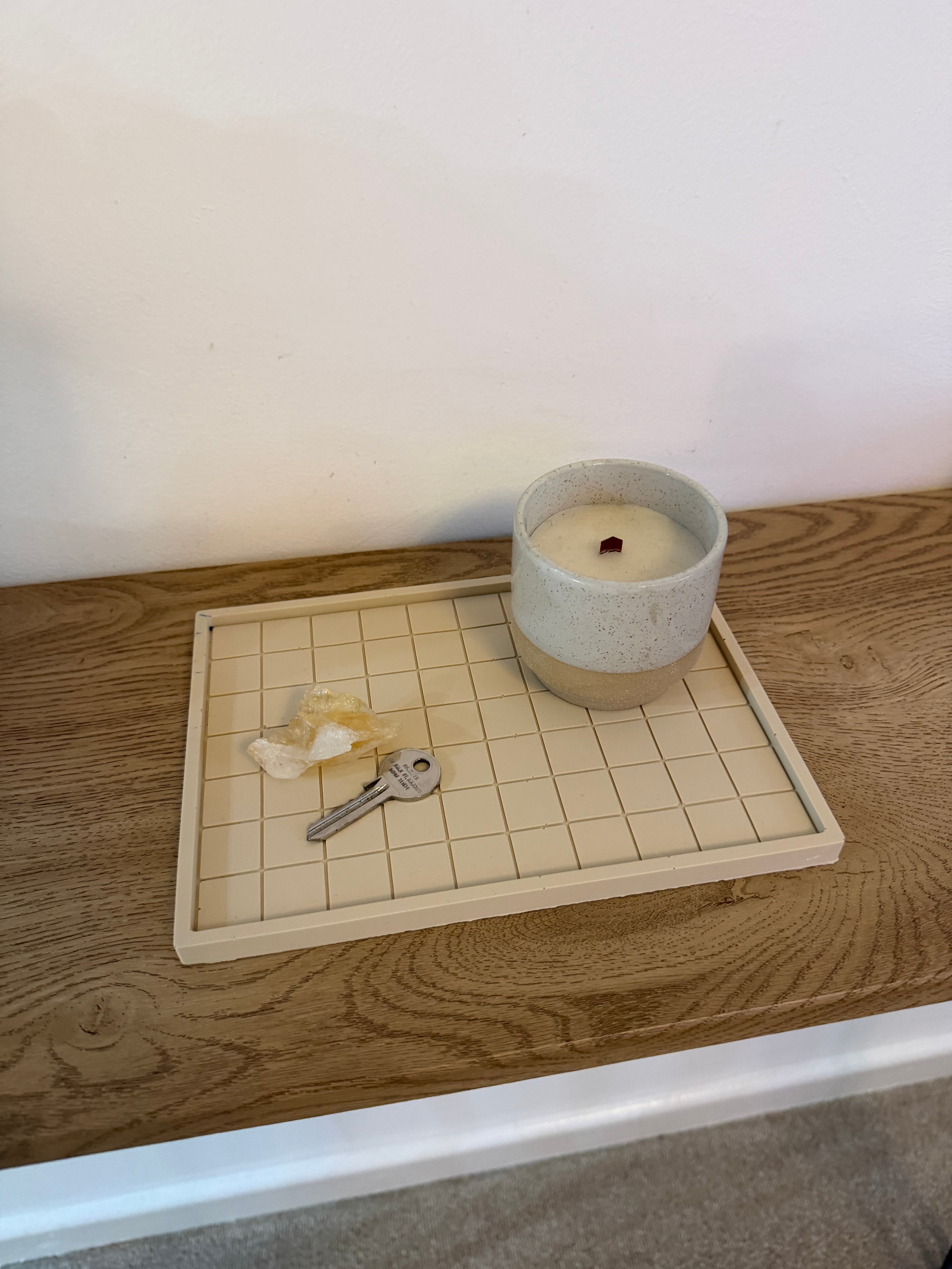 Featuring a clean indented grid pattern and raised edge, this decorative tray is perfect for styling coffee tables, consoles, bedside tables or dressing tables. Use it to hold candles, keys, jewellery, perfumes, skincare or small home accessories while keeping surfaces tidy and intentional.